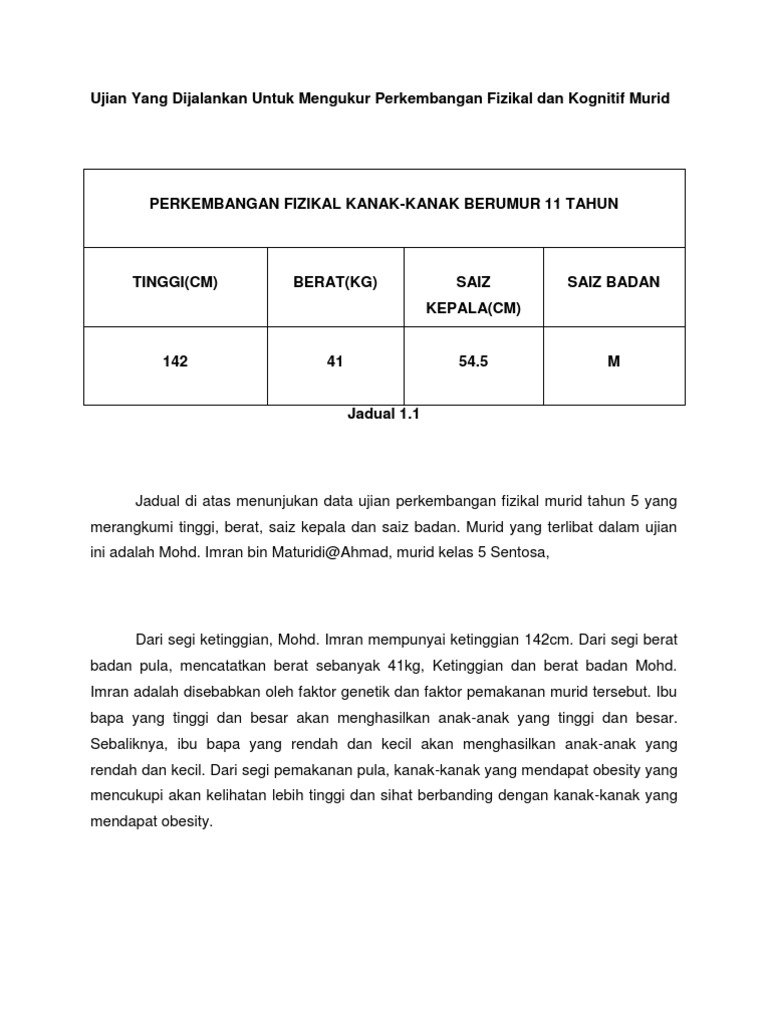Ujian Yang Dijalankan Untuk Mengukur Perkembangan Fizikal Dan Kognitif Murid