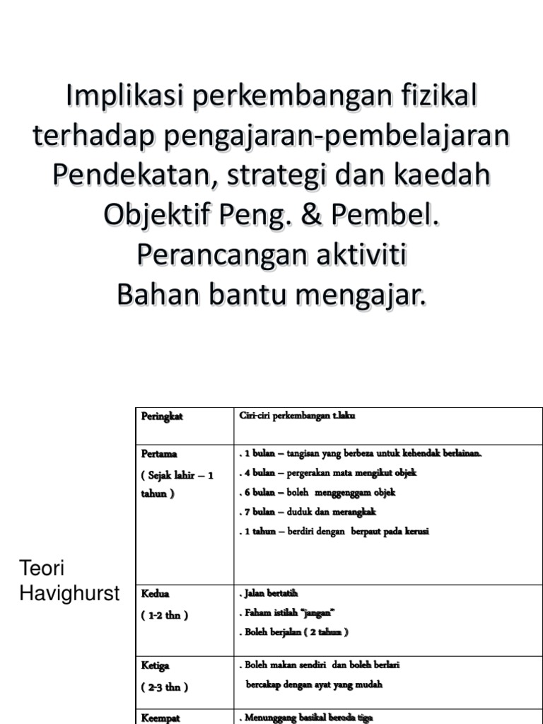 Temat duduk hendaklah tertutup untuk guru dan murid sahajaterdapat papan hitam serta jauh dari pintu dan tingkap. Margetts 2007terdapat 3 prinsip perkembangan fizikal prinsip 1perkembangan bermula daripada kepala ke kaki. Pilih tempat duduk yang jauh dari sebarang gangguan pendengaran dan penglihatan.