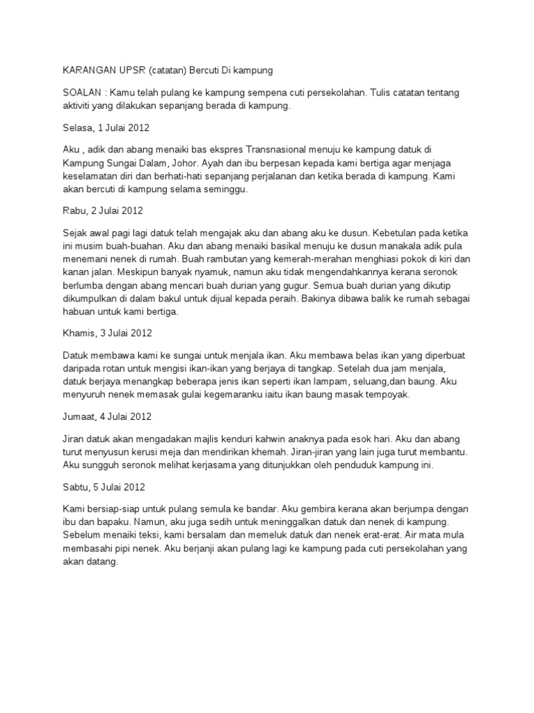 Karangan Catatan Aktiviti Di Kampung
