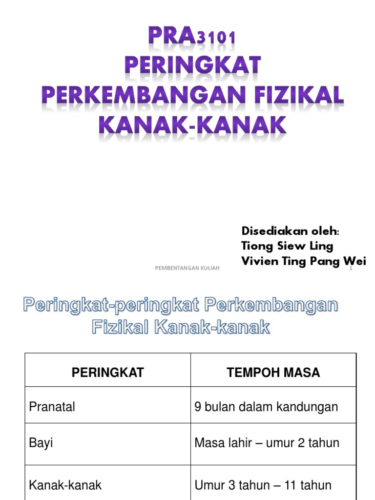 Menyedari perbezaan keupayaan individu. Selama bertahun-tahun remaja yang berada di tahap ini akan berkembang secara fizikal dan akan menjadi anak persekolahan yang kelihatan seperti kanak-kanak kepada orang yang lebih dewasa. PERINGKAT PERKEMBANGAN FIZIKAL KANAK-KANAK PERINGKAT UMUR TAHUN ASPEK PERKEMBANGAN.
