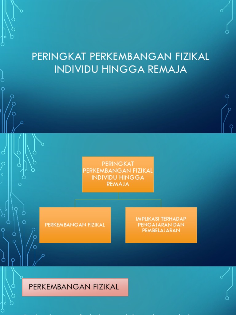 Implikasi perkembangan fizikal terhadap PdP. Perkembangan Remaja Akhir peringkat perkembangan remaja akhir adalah yang paling panjang. Perkembangan fizikal remaja perlu diketahui bagi membantu memahami tentang sesetengah remaja yang lambat atau cepat dalam pekembangan mereka dan apakah kesan-kesan disebaliknya.