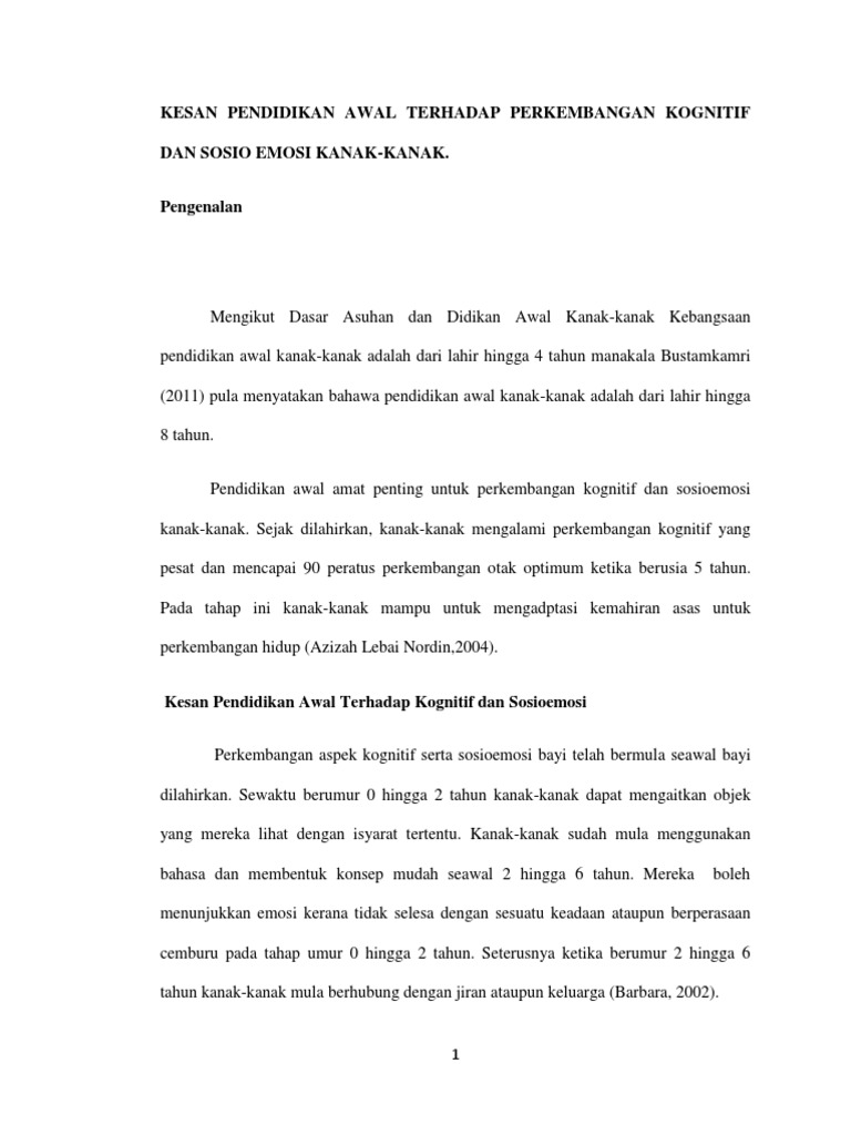Kurikulum Pendidikan Prasekolah Kebangsaan telah memfokuskan pendidikan awal kanak-kanak merangkumi perkembangan bahasa dan komunikasi perkembangan kognitif kerohanian dan moral sosio emosi fizikal kreativiti dan estetika Malaysia 2006. Mula membezakan suara daripada keluarga dan orang lain. Numerasi Awal Kanak-kanak Perkembangan Bahasa.