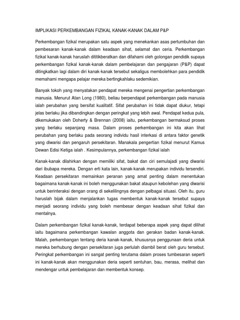 Nama pengasuh Nur Batrisyia Bt Mohd Samsuri. Scribd es red social de lectura y publicacin ms importante del mundo. Perkembangan pada usia ini tidak kurang pentingnya daripada perkembangan kanak-kanak di bawah umur lima tahun.