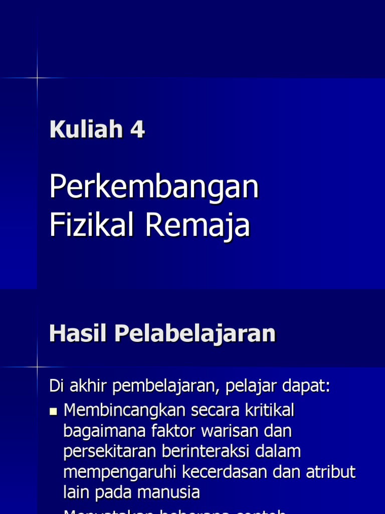 11032019 Perkembangan dunia telekomunikasi menggalakkan penciptaan aplikasi permainan atas talian dan penggunaan media sosial menjadi popular dalam kalangan remaja. Pengaruh baka adalah lebih bagi ciri-ciri fizikal. 28022007 Secara ringkasnya pertumbuhan fizikal remaja adalah dalam kadar sederhana iaitu tidak terlalu pesat seperti pada zaman bayi dan kanak-kanak.