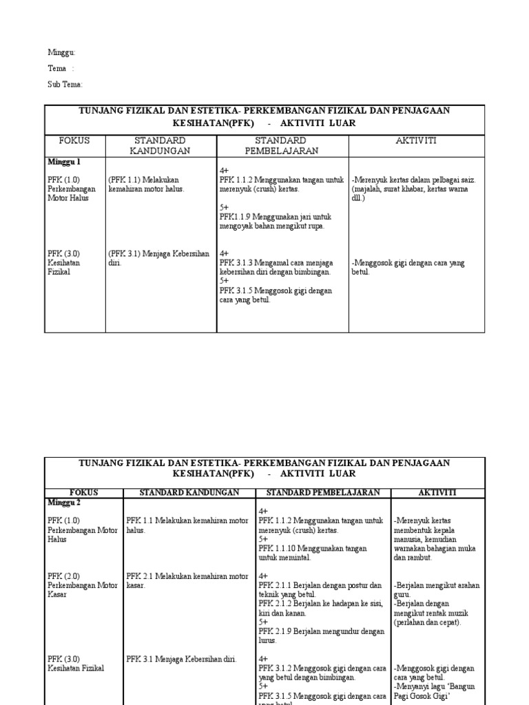 07062021 prasekolah pdpr praskepe. Tunjang fizikal dan estetika docx masa 8 00 pagi 8 40 pagi umur 4 tahun standard kandungan ke 1 1 menyanyikan lagu. Tunjang fizikal dan estetika semua guru mestilah menyediakan rancangan pengajaran berdasarkan rph di dalam ketua panitia pendidikan jasmani buku rekod mengajar sebelum masuk kelas.