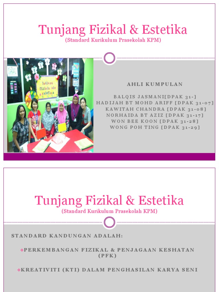 11062021 Tunjang fizikal dan estetika tabika kemas mk medan td. Tunjang Perkembangan Fizikal dan Estetika merangkumi Perkembangan Fizikal dan Penjagaan Kesihatan serta Perkembangan Kreativiti. Pusat Kerohanian dan Moral.