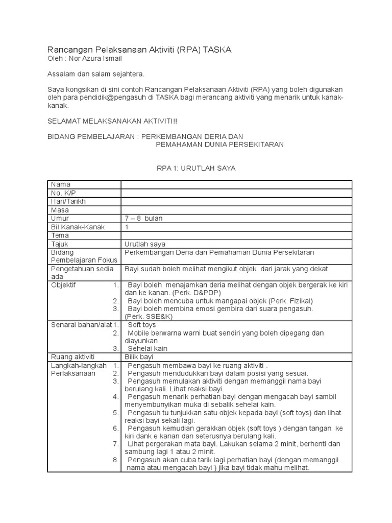 Rancangan Pengajaran Aktiviti Rpa Taska