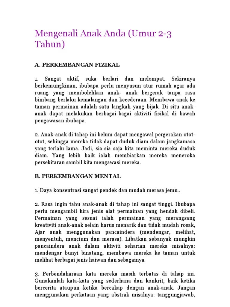 Mengenali Anak Anda Umur 2 3 Tahun A Perkembangan Fizikal