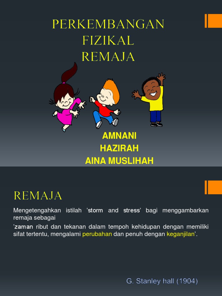 Remaja secara fizikal kelihatan sudah dewasa kecuali mentalnya belum. View Berikan konsep perkembangan fizikal kanakdocx from EDUP 3023 at IPG Kampus Bahasa Melayu. PERKEMBANGAN FIZIKAL REMAJA Kadar pertumbuhan dan perkembangan pada peringkat remaja adalah cepat dan pesat sama seperti kadar perkembangan semasa bayi.