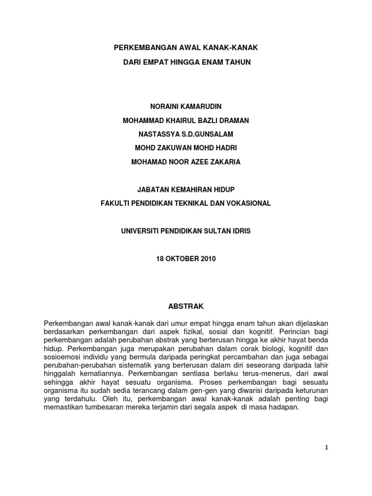 Edu 3102 Perkembangan Fizikal Kanak Kanak Dari Umur 6 14 Tahun. Pdf Faedah Bermain Dalam Perkembangan Kanak Kanak Prasekolah 4 6 Tahun. 08042016 Perkembangan Kognitif Anak Usia 4-6 Tahun Oleh Juditha Elfaj Usia ini masih termasuk dalam rentang tahap pra-operasional 2 7 tahun dimana kemampuan menerima rangsangan anak masih terbatas.