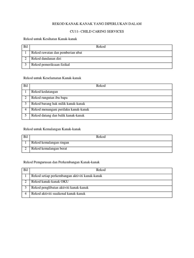 Panduan Asuhan Dan Didikan Kanak Kanak Rekod Rekod Di Taska